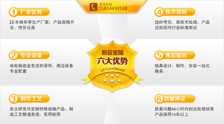 深圳市新亞金屬制品有限公司坐落于沿海經濟中心——深圳,是國內城市公共設施、交通設施、裝飾工程企業(yè)之一,是一家具有自主研發(fā)和設計能力的以公交候車亭為主導的綜合性金屬制品企業(yè)。